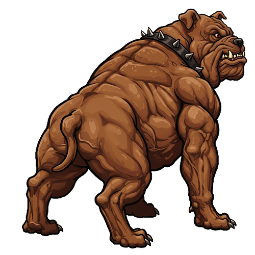 Samson is inspired by a dog that used to lived a couple houses down the street from me...he was a mean son-of-a-bitch. I once fended this dog off with one of those yellow wiffle-ball bats. You'll see Samson in a couple designs like Dawg Ballz and Dawg Pound. He's loyal and a protector to Gruff & Fam, but that's it. Everyone else he hates.